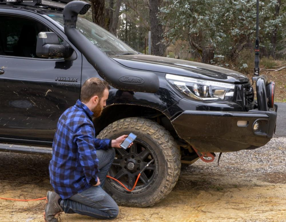 Huštění pneumatik nikdy nebylo jednodušší nebo rychlejší, než při vybavení systémem kontroly tlaku vzduchu od firmy ARB. Umožní vám využívat pohodlí vaší místní čerpací stanice při používání kompresoru vzduchu k huštění pneumatik přímo ve vašem 4WD. Chcete-li používat kontrolu tlaku vzduchu ARB, nastavte jednoduše „cílový tlak“ pomocí mobilní aplikace „ARB Pressure Control“ a poté připojte standardním způsobem (není nutný tlakoměr) vzduchovou hadici od kompresoru k ventilku pneumatiky vašeho vozu. Kompresor zjistí ve spojení s jednotkou kontroly tlaku vzduchu aktuální tlak v pneumatice a poté začne kolo nafukovat až do dosažení přednastaveného tlaku. Jakmile je dosaženo cílového tlaku, bude kompresor hodnotu tlaku udržovat a odešle do vašeho mobilního telefonu zvukové upozornění s vibracemi. Poté odpojte hadici od pneumatiky a připojte ji na další kolo.