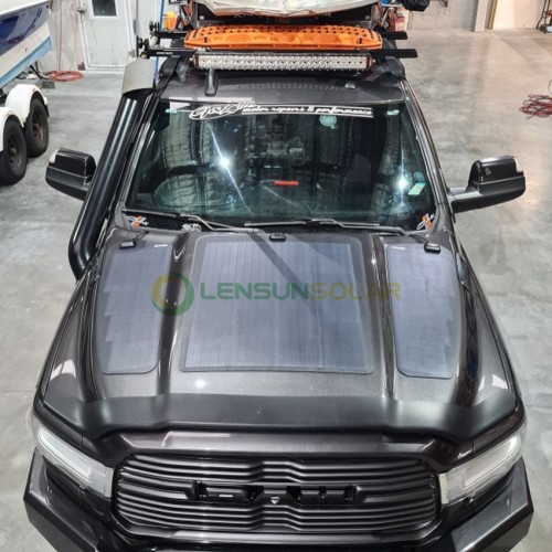 LensunSolar je známý a uznávaný výrobce solárních panelů, který vyrábí vysoce kvalitní solární panely pro různé aplikace. Jako jsou například solární panely přizpůsobené na kapoty konkrétních typů vozidel. Poskytují napájení 12V příslušenství, jako jsou například chladničky, osvětlení, telefony a fotoaparáty. Solární systém dobíjí baterie i když vozidlo stojí a není možnost se připojit k síti.