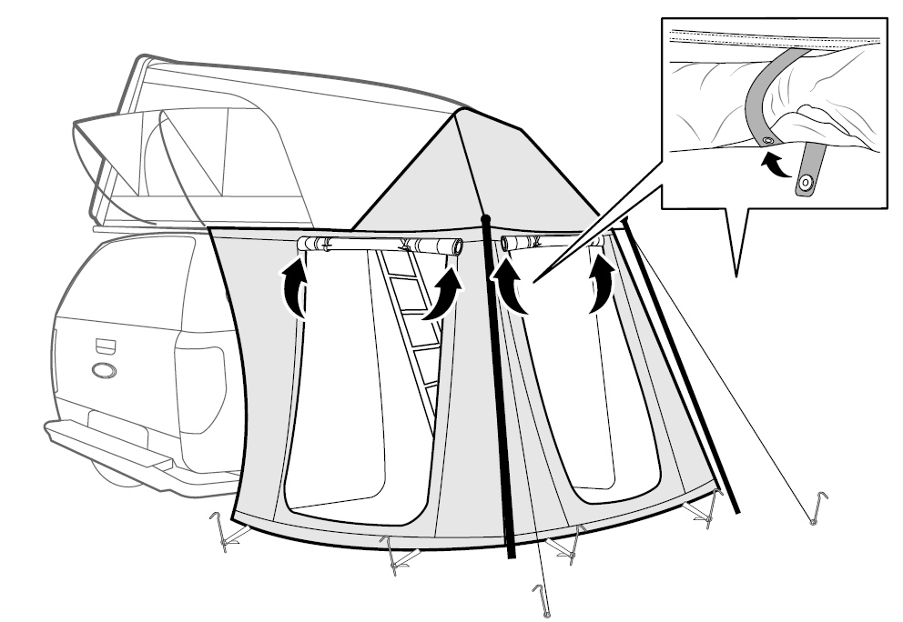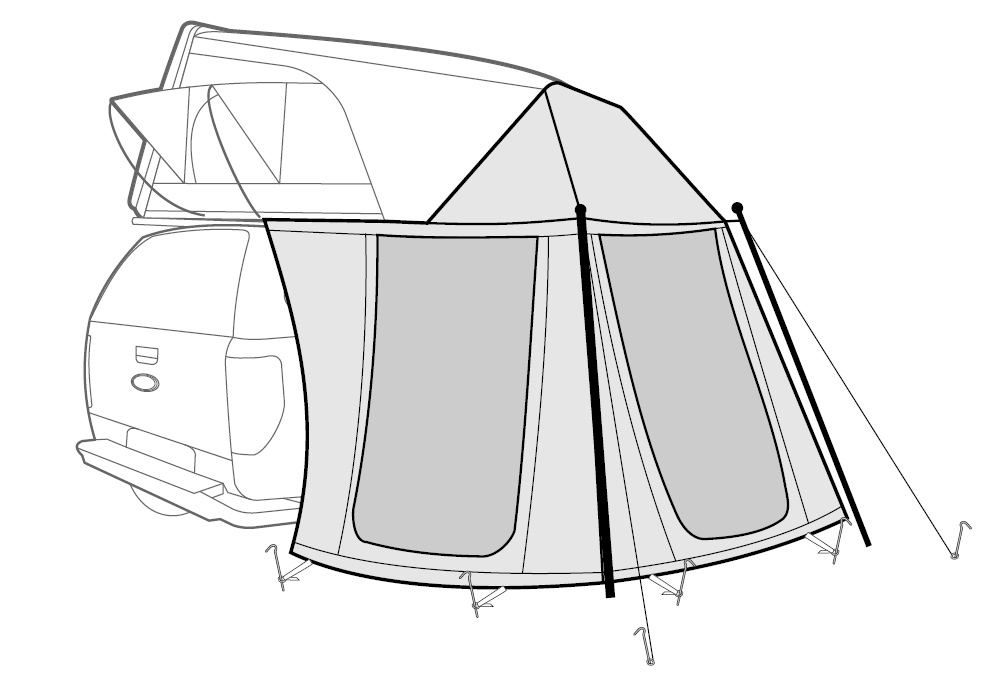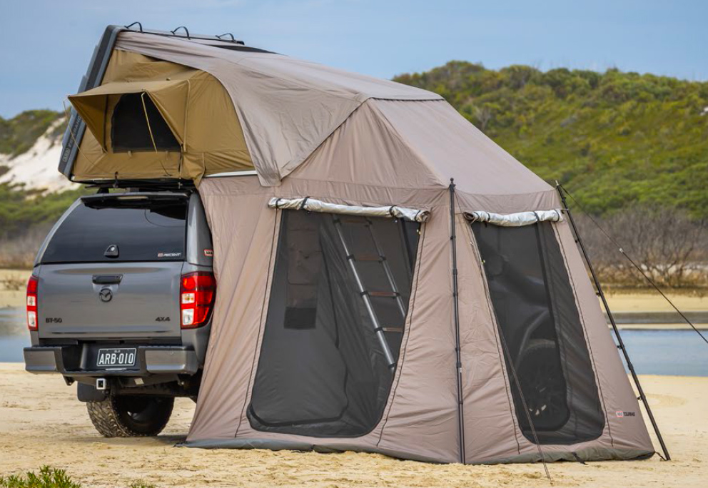 ARB přístavba ke střešnímu stanu ARB ESPERANCE. ARB nabízí další příslušenství k Vašemu střešnímu stanu ARB Esperance. Přístavba nabízí další obytný prostor, soukromí, ochranu a možnost přespání dalších osob.