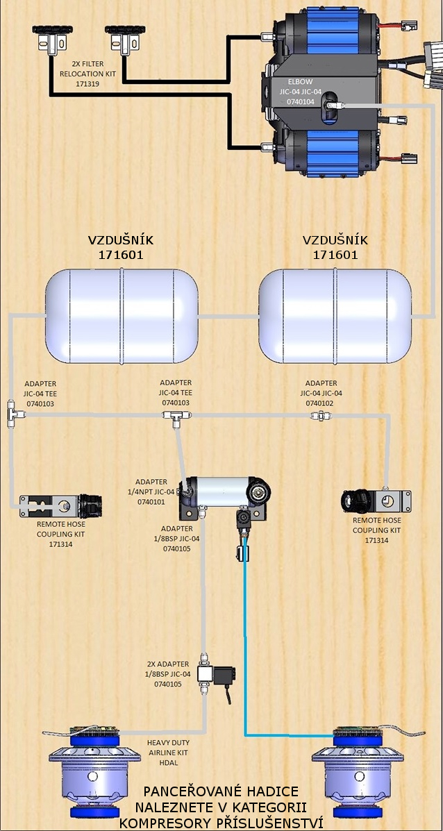 Sada pro vzdálenou montáž výstupu vzduchu od kompresoru.